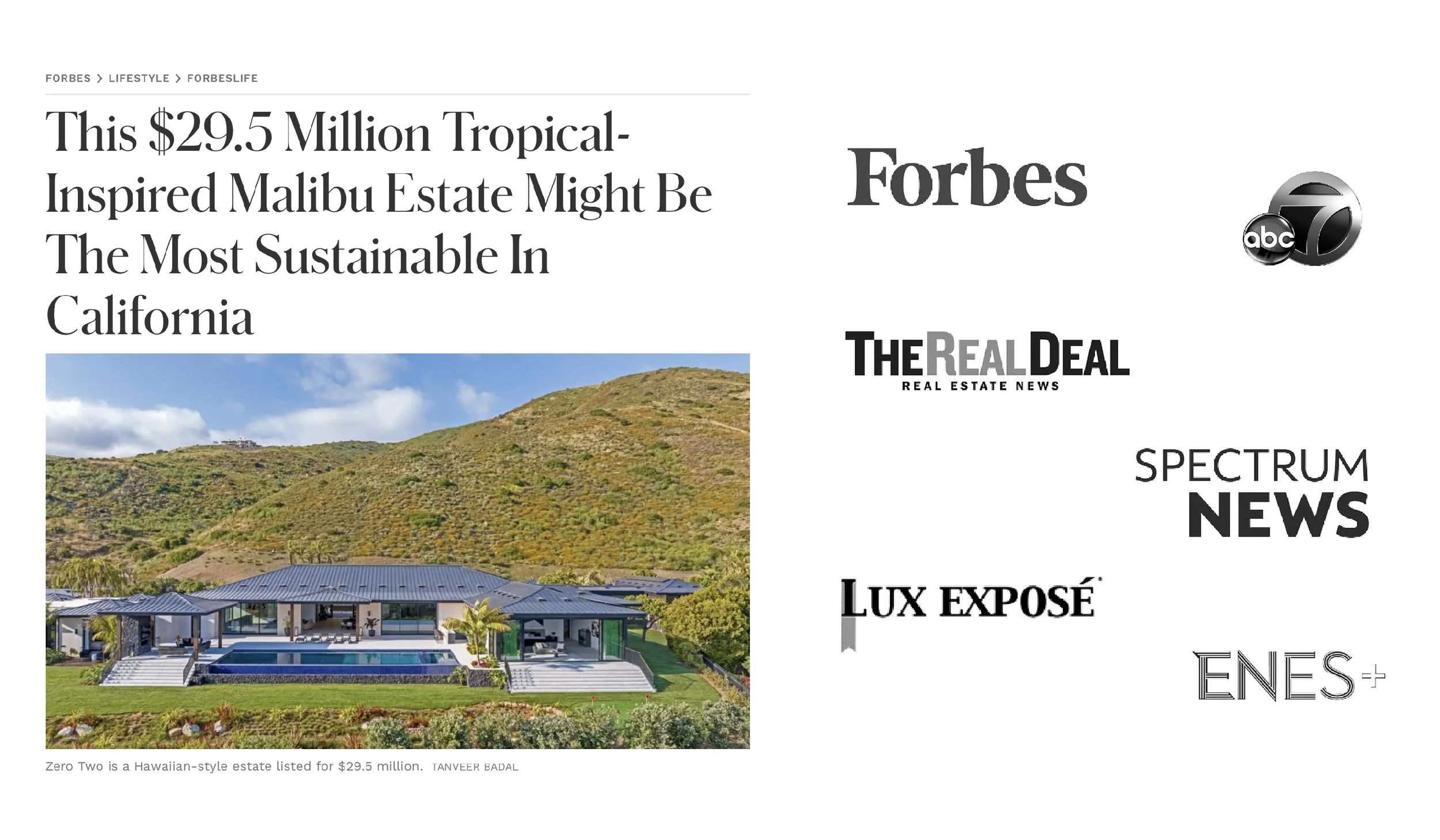 “This six-bedroom, eleven-bathroom home in Malibu is a modern Hawaiian-style estate in Malibu with 16,489 square feet of living space. Set on two acres, the home proves that luxury and sustainability can coexist. The contemporary residence is a ranch-style home with open-air pavilions, lush landscaping, and far-reaching ocean views. “