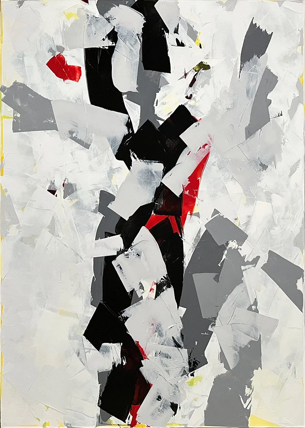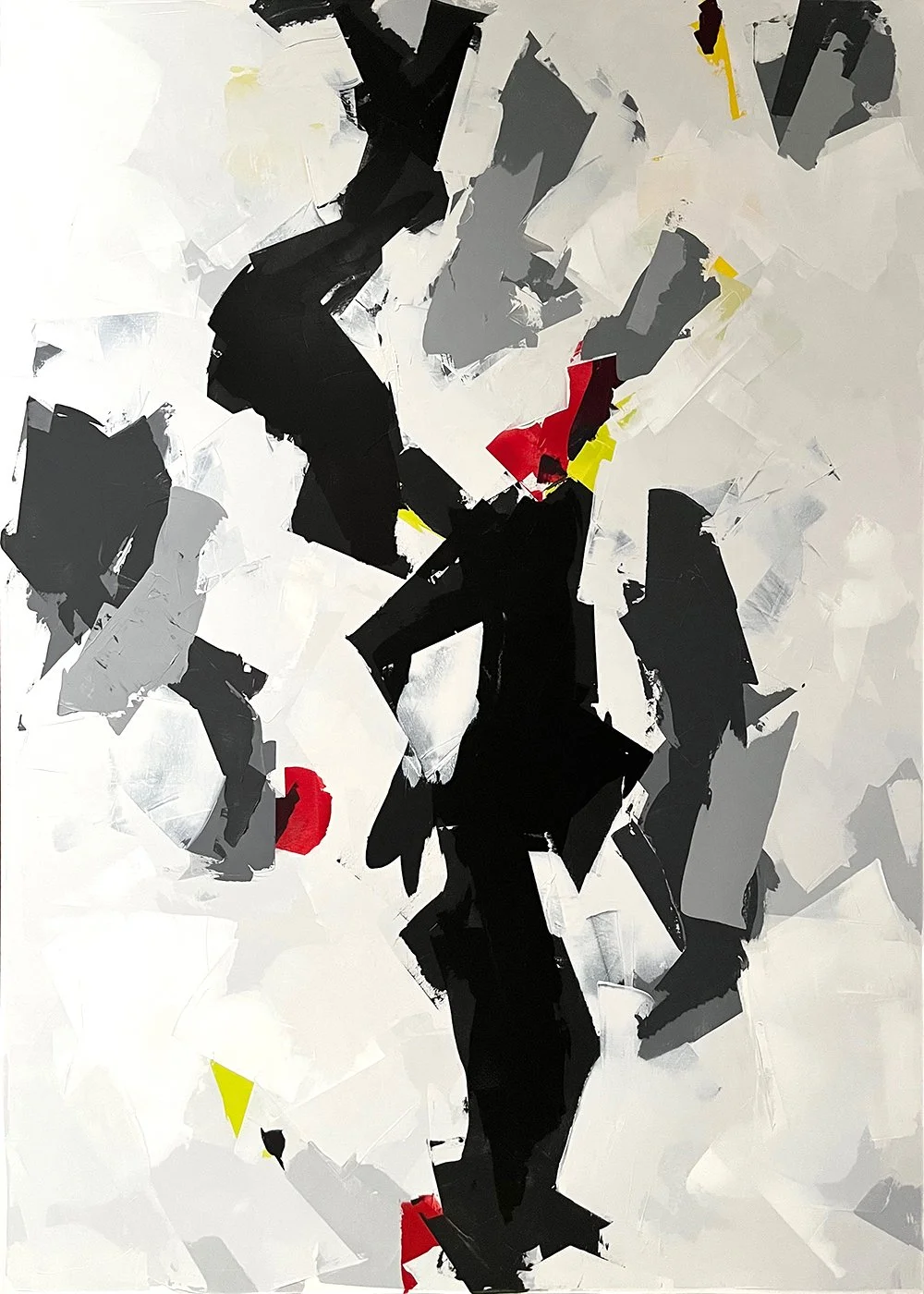 Scherrer uses graphic precision and expressive impulse to merge structure with spontaneity. His roots in Switzerland and his early training in typography and grid systems continue to inform his work, lending clarity to even the most gestural pieces.