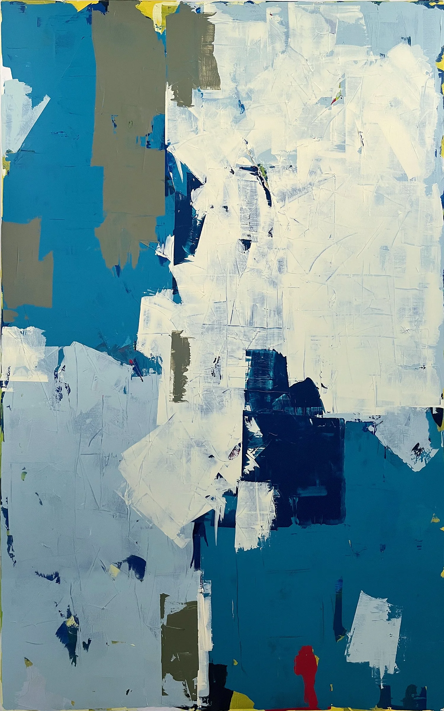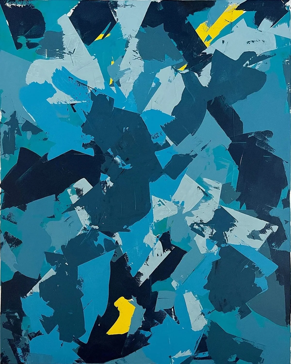 He begins each piece on a luminous yellow ground, then builds, scrapes back, and re-works the surface through multiple layers, allowing each painting to embody both what is seen and what lies beneath.