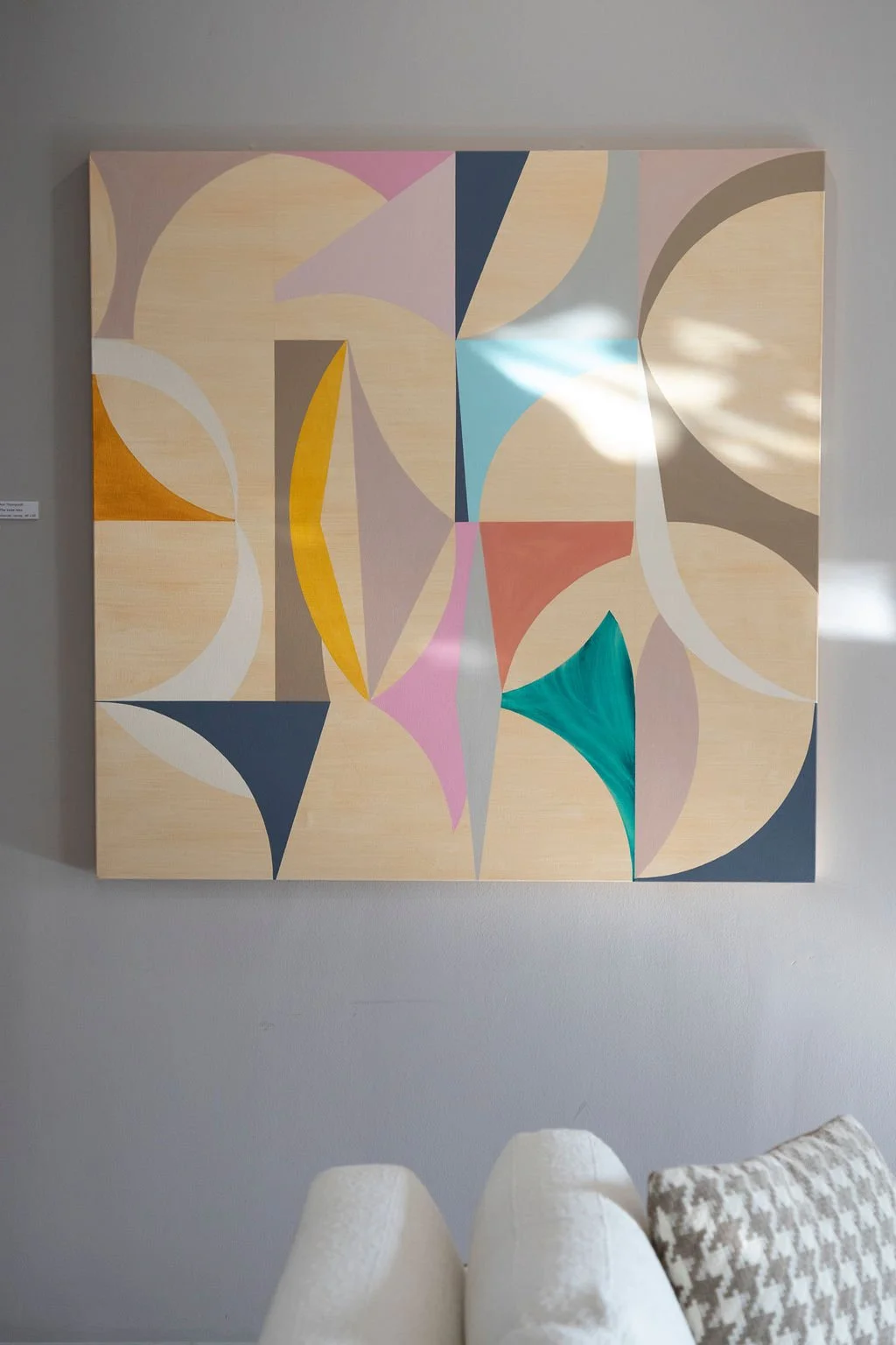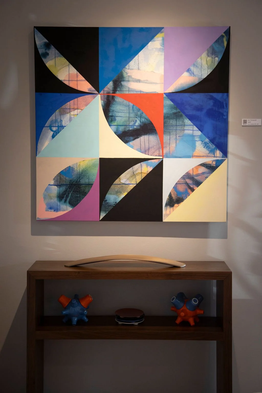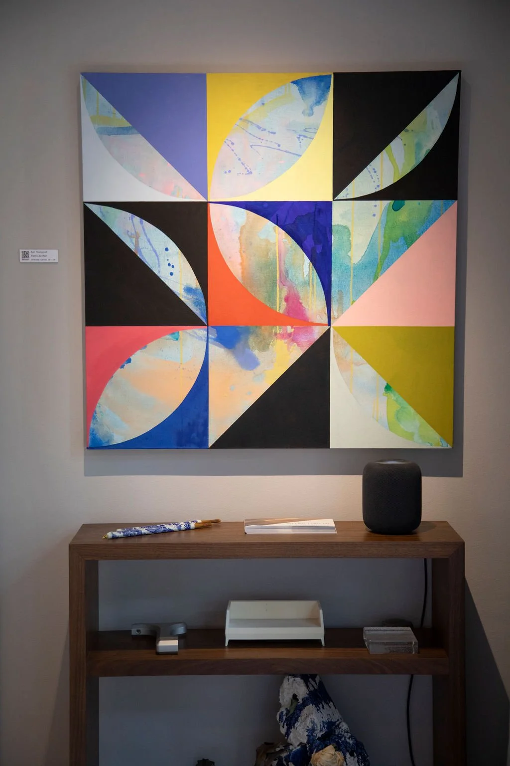 Jason Trotter’s geometric abstractions marry bold color and precise form, exploring the interplay of lines and shapes through a meditative creative process. Inspired by modernist masters like Carmen Herrera and Josef Albers, his hard-edged compositions reflect a balance between spontaneity and control. Working primarily in acrylics, Trotter’s technique incorporates multi-canvas structures, textured layers, and custom hues to produce work that is visually compelling and architecturally resonant. Based in Los Angeles, the self-taught artist continues to evoke instinctual reactions that uplift and inspire.