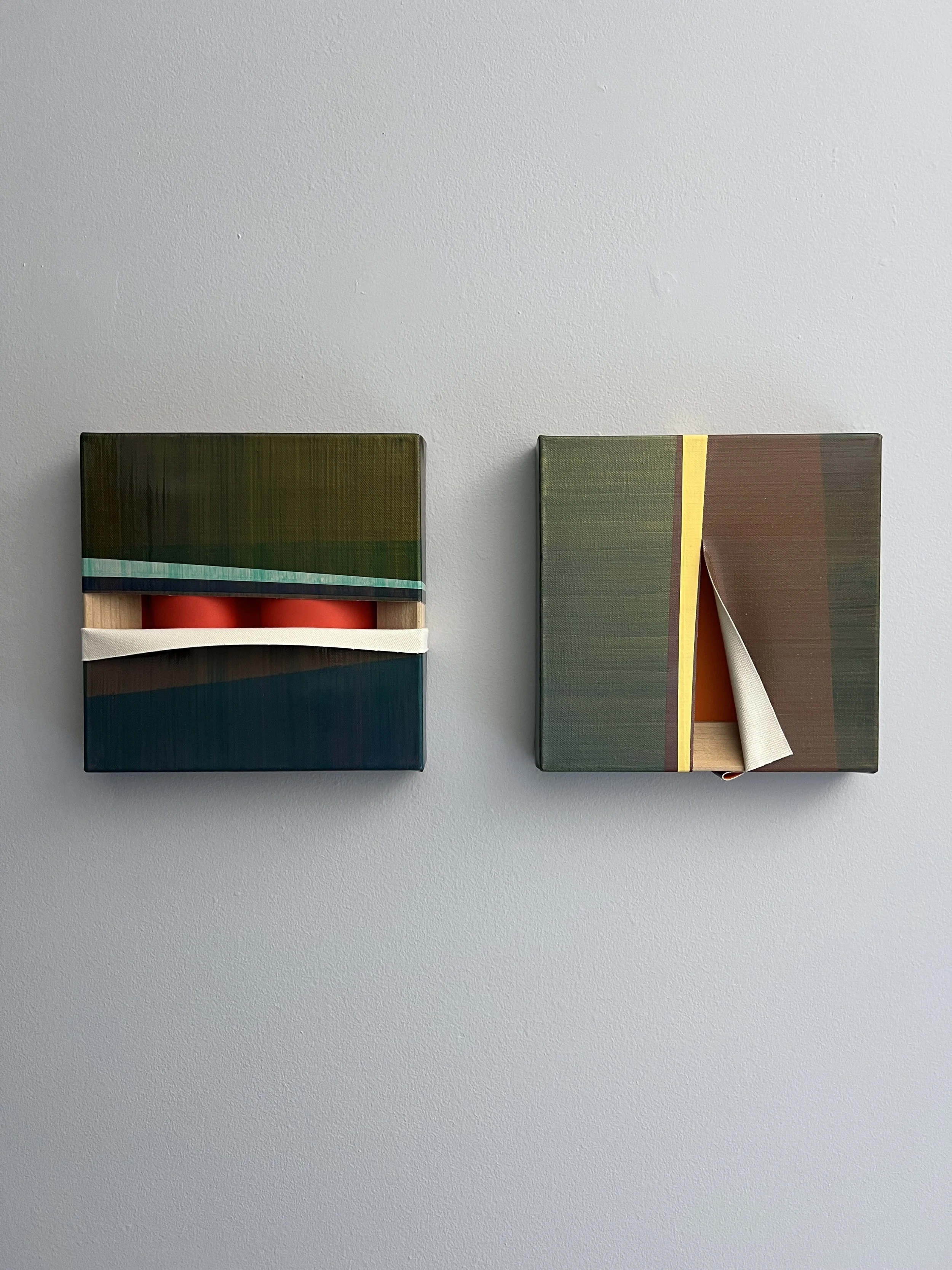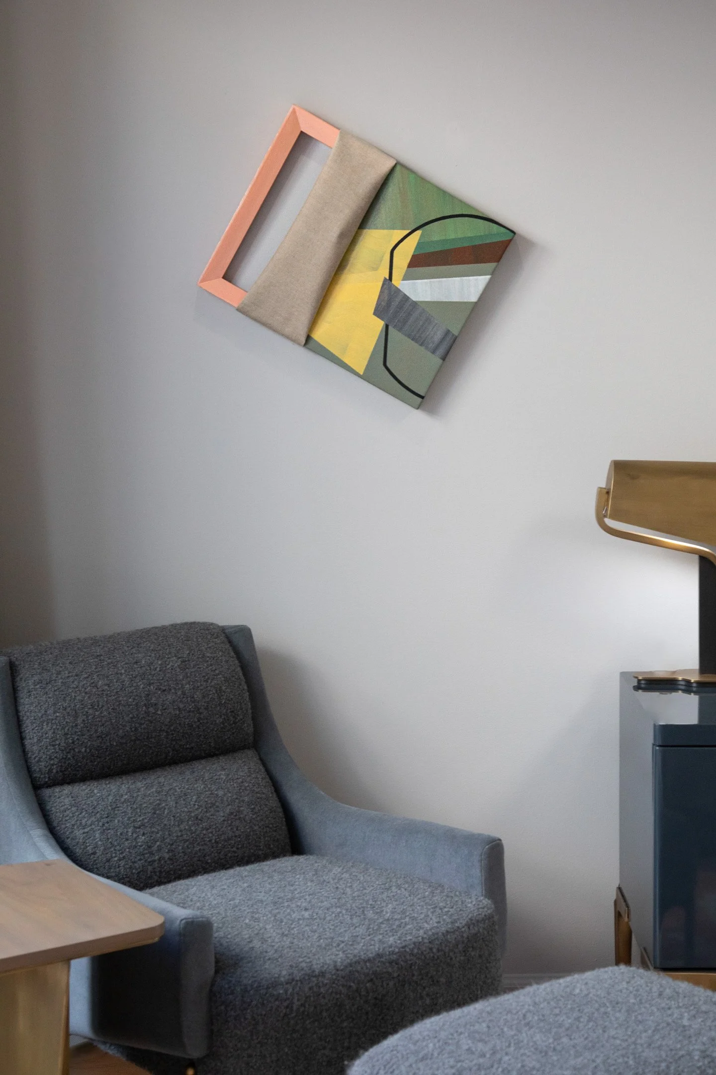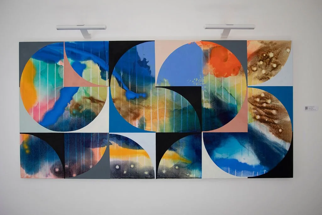 Jason Trotter’s geometric abstractions marry bold color and precise form, exploring the interplay of lines and shapes through a meditative creative process. Inspired by modernist masters like Carmen Herrera and Josef Albers, his hard-edged compositions reflect a balance between spontaneity and control. Working primarily in acrylics, Trotter’s technique incorporates multi-canvas structures, textured layers, and custom hues to produce work that is visually compelling and architecturally resonant. Based in Los Angeles, the self-taught artist continues to evoke instinctual reactions that uplift and inspire.