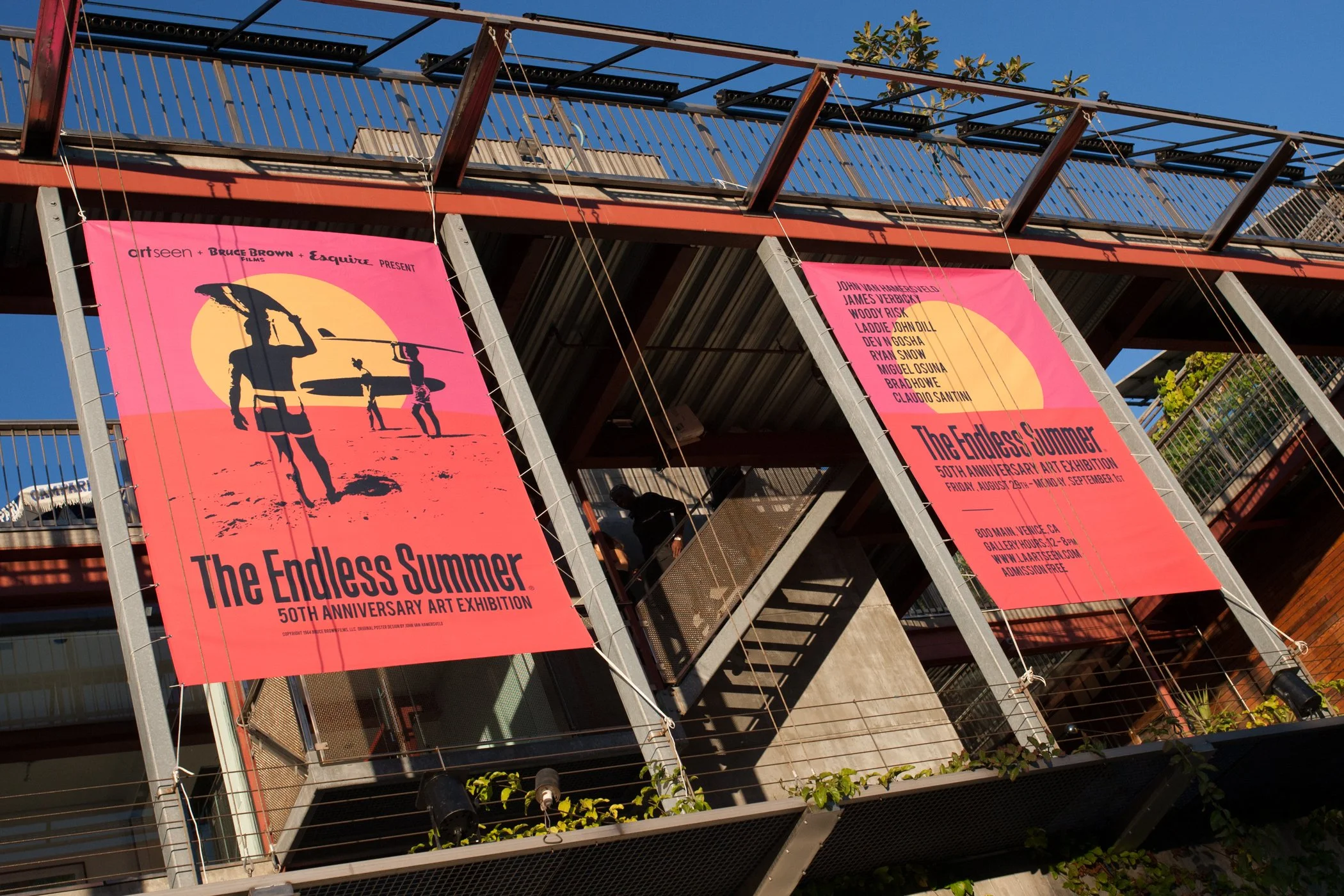 Art Seen partnered with Esquire and Bruce Brown Films to celebrate the 50th anniversary of the cult classic, "The Endless Summer" with an exhibition showcasing the original poster, created by legendary artist John Van Hammersveld. Eight additional artists - Ryan Snow, James Verbicky, Miguel Osuna, Dev N Gosha, Laddie John Dill, E.T. Risk, Brad Howe, and Claudio Santini - created works inspired by the original film and iconic poster.